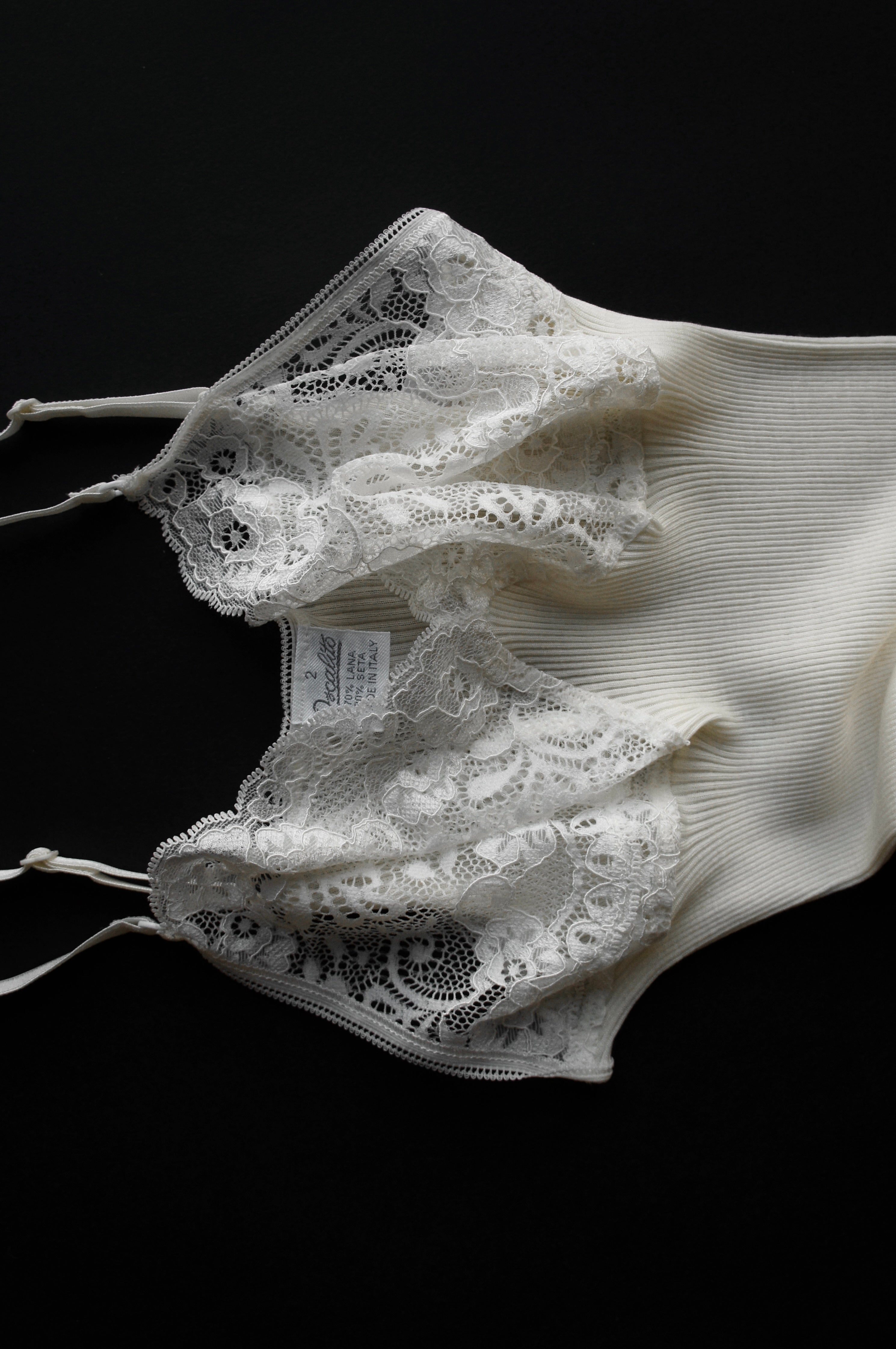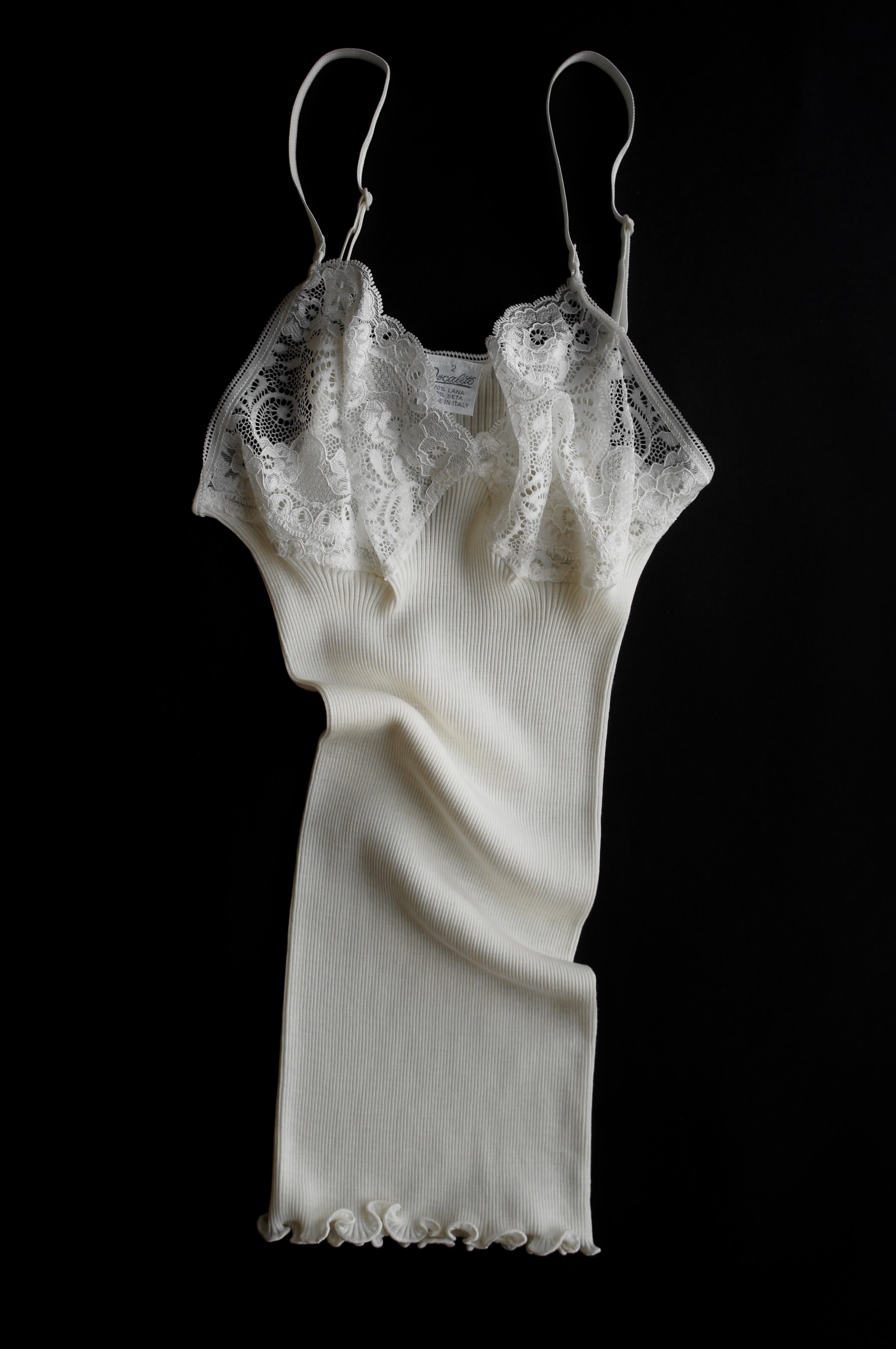 Prążkowany top na cienkich ramiączkach, z koronkową górą. Uszyty z najwyższej jakości mieszanki wełny i jedwabiu, która miękko układa się na ciele, zapewniając wyjątkowy komfort. Dzięki swojej elastyczności idealnie dopasowuje się do sylwetki, podkreślając jej naturalne kształty.