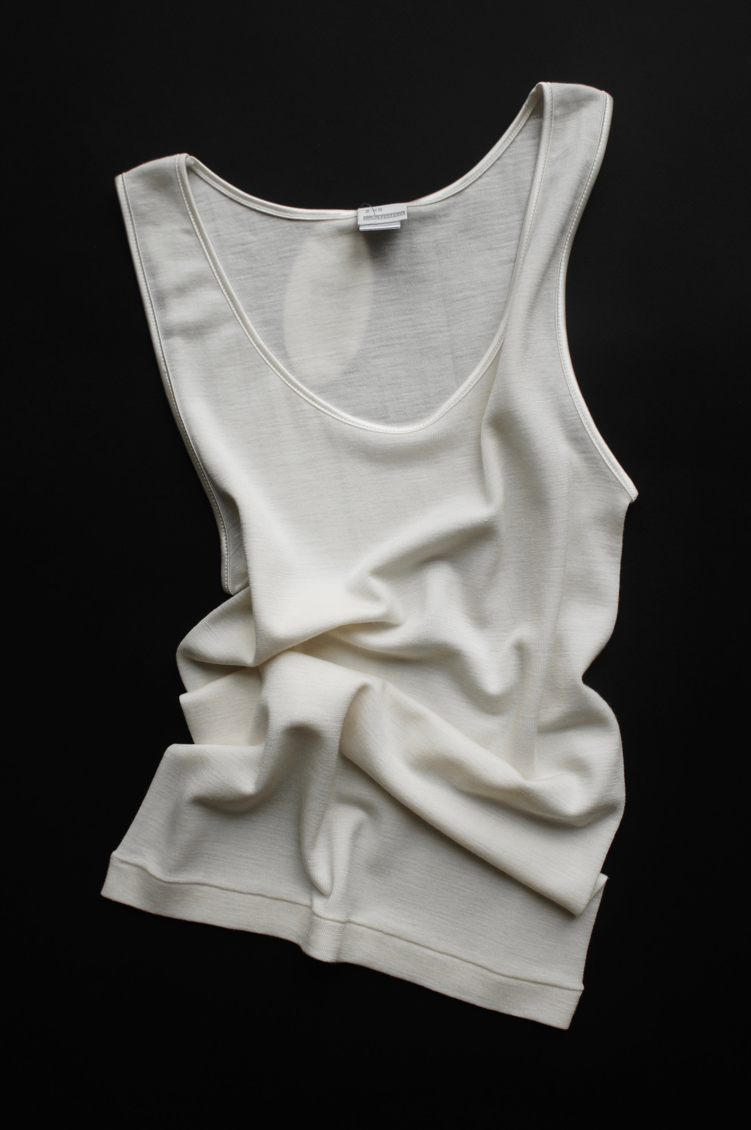 Top with wide straps, made of a wool and silk blend. The delicate, soft material fits perfectly to the body, emphasizing the natural beauty of the figure. For a looser cut, we recommend choosing a larger size.